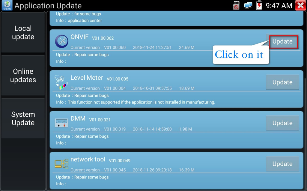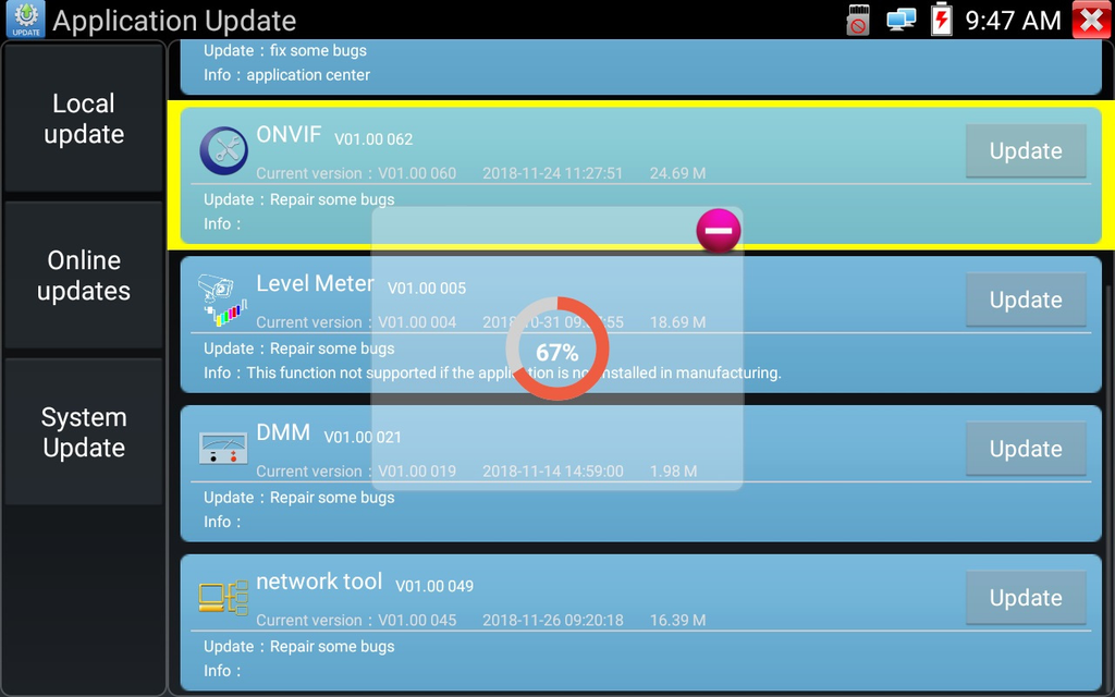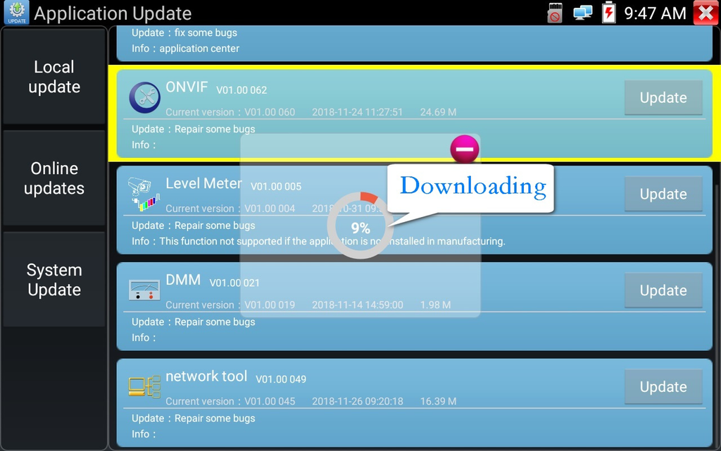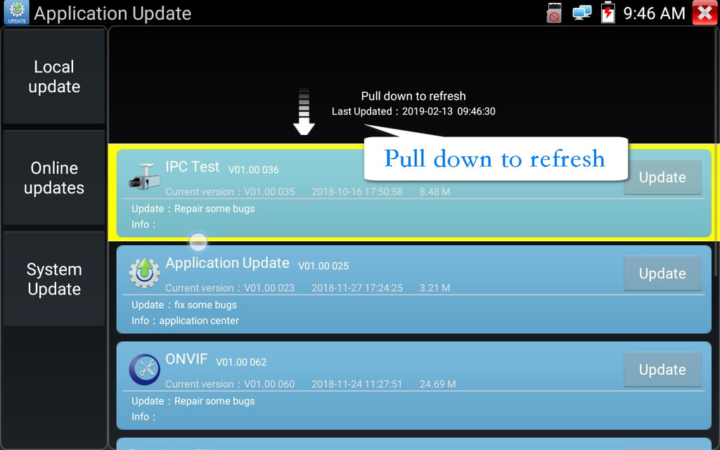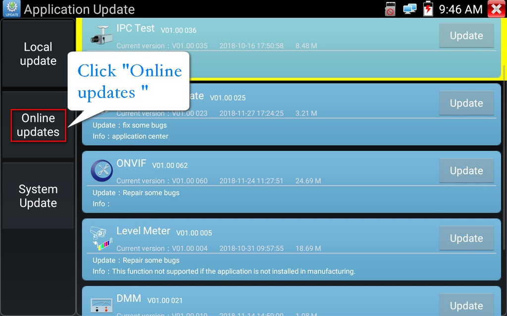 The Rsrteng IPC-9800 Plus+ series online update software requires connecting the device to the Internet and then searching online for updatable software to update. As shown in the figures below: