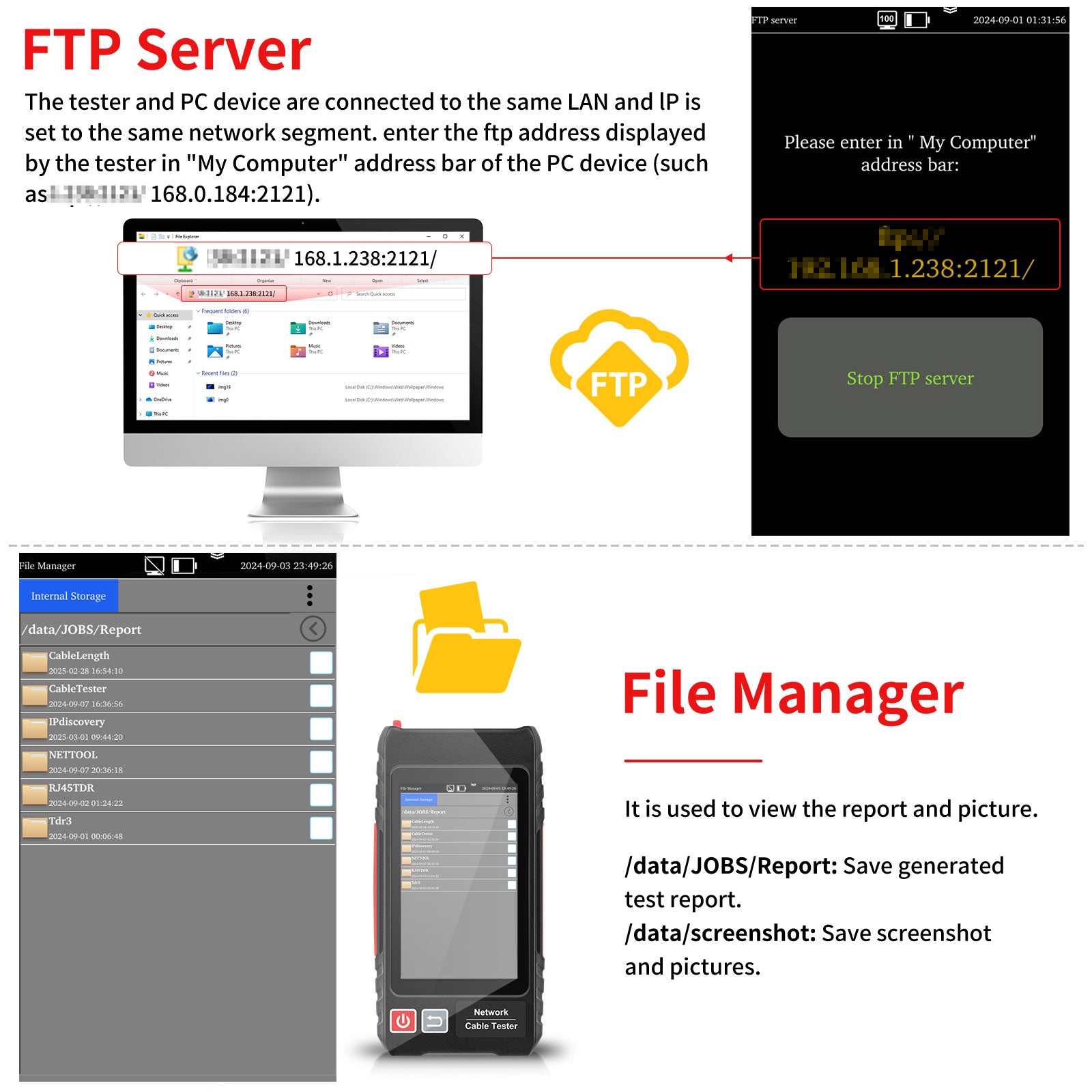 | Network tool | IP discovery, IP address scan, PING test, LLDP/CDP detection, Port flashing, PPPOE dial-up, FTP server, etc. |